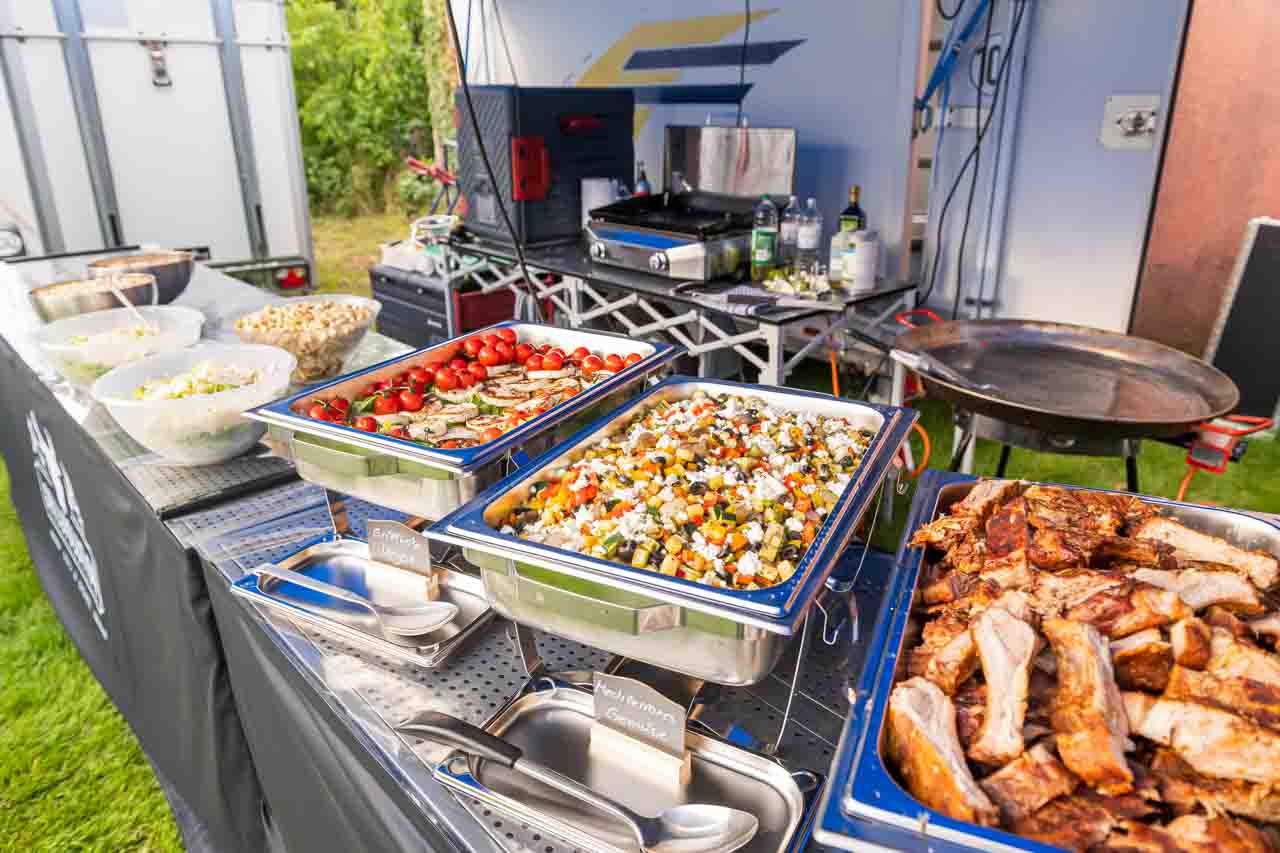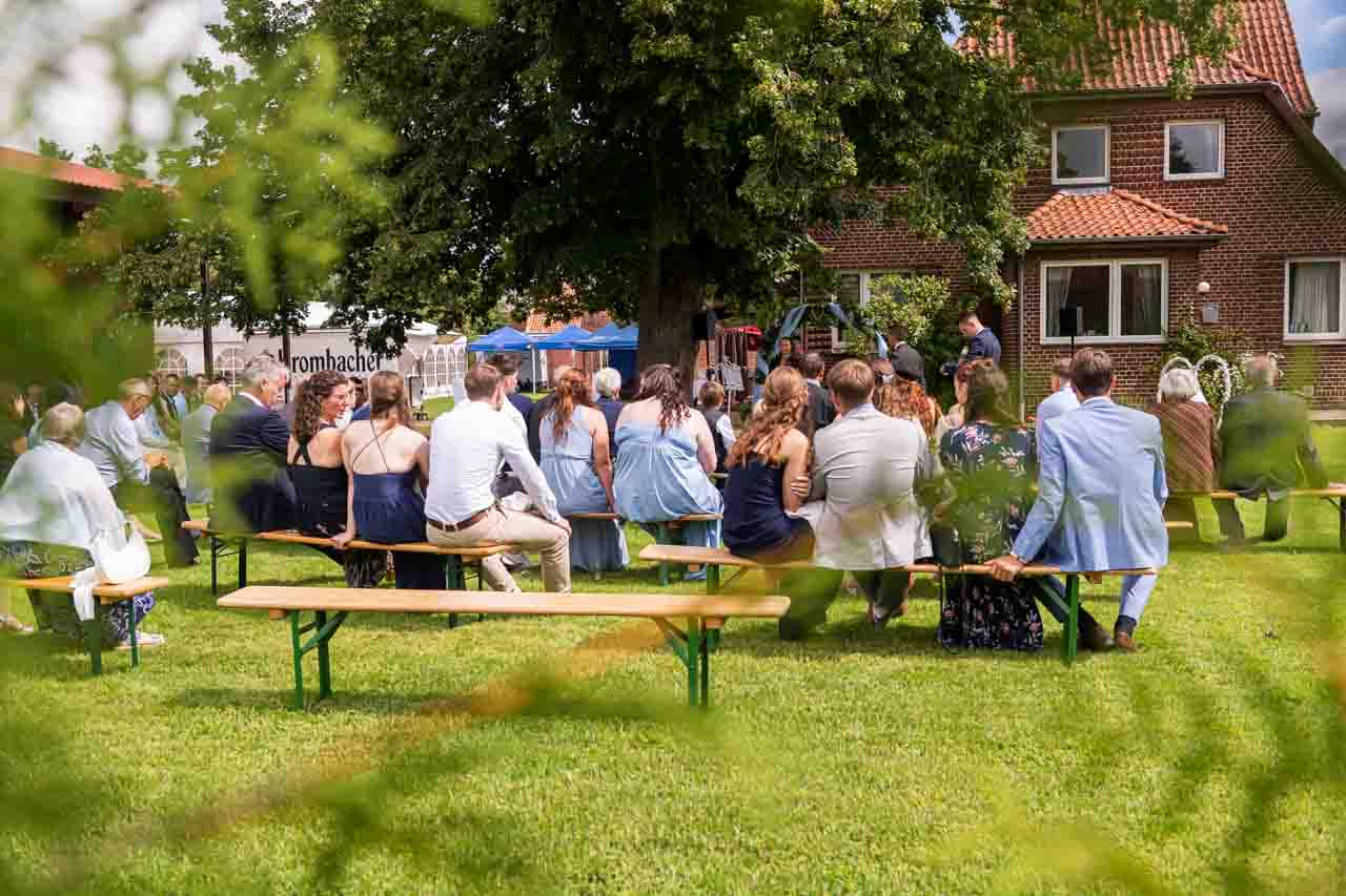 Nach dem emotionalen Ja-Wort und unzähligen Gratulationen und dem entspannten Brautpaarshooting ging es zum entspannten Teil des Abends über. Anstelle eines steifen Menüs entschieden sich Hanna und Lukas für ein hochwertiges Grillbuffet, das perfekt zum ländlichen Ambiente passte. Ein erfahrener Caterer aus der Region Uelzen zauberte eine kulinarische Vielfalt, die alle begeisterte.