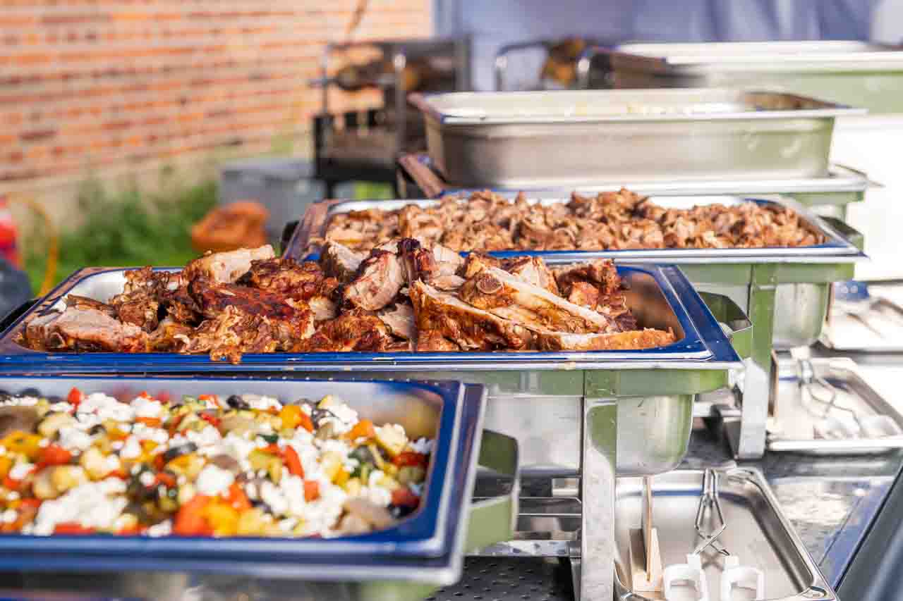 Dieses Hochzeits-Grillbuffet war nicht nur unglaublich lecker, sondern förderte auch eine lockere und kommunikative Atmosphäre. Die Gäste kamen ins Gespräch, während sie sich ihre Teller zusammenstellten und genossen die laue Sommernacht unter freiem Himmel.