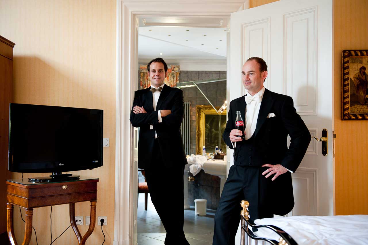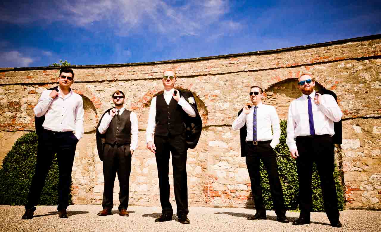 - Stilvolle Hochzeitsvorbereitungen! Die Freunde des Braeutigams stimmen sich ein.