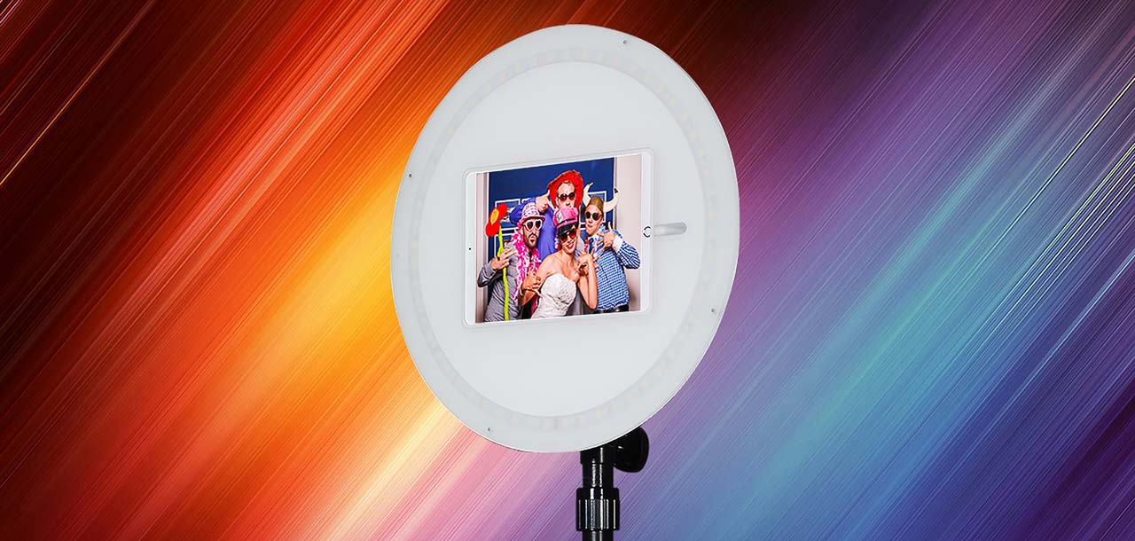 - Fotobox mit LED-Ringlicht und lustigen Accessoires. Perfekt fuer unvergessliche Momente und kreative Fotos auf jeder Hochzeit oder Party.